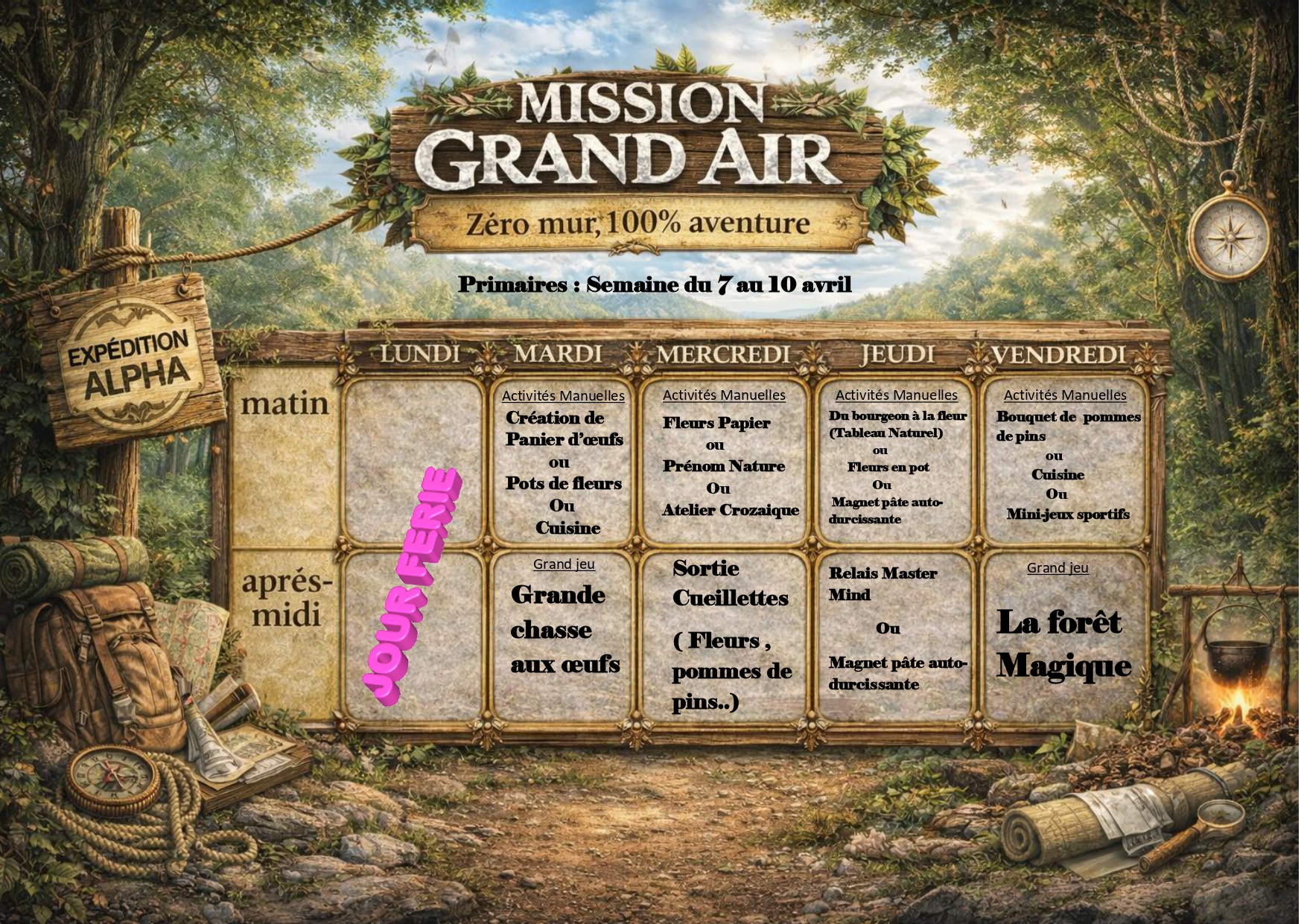 Planning Vacances semaine 1